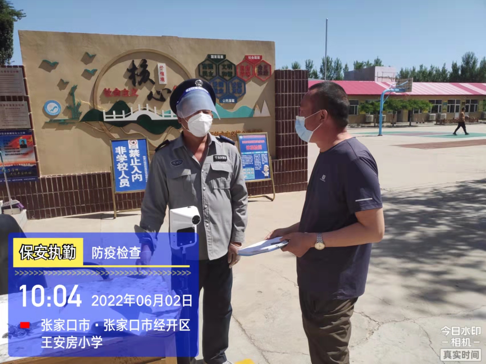 會(huì)后,我公司迅速召開“疫情期間學(xué)校門衛(wèi)安全防控工作要求”的會(huì)議,制定了校園安全防疫規(guī)定:疫情防控期間,校園保安隊(duì)員必須穿制服,規(guī)范佩戴“三件套”(防護(hù)隔離面罩、N95口罩、一次性PVC手套);進(jìn)出校園的師生必須測(cè)量體溫,外來人員需登記、測(cè)溫、掃碼(幸福張家口,呈綠碼)、且持7日內(nèi)核酸陰性檢測(cè)結(jié)果;保安室需保持干凈整潔,物品擺放有序,勤開窗通風(fēng),定期噴灑消毒藥水。為此,公司特成立校園防疫檢查小組,由副經(jīng)理帶隊(duì),協(xié)同主管大隊(duì)長對(duì)經(jīng)開區(qū)所有中小學(xué)校安保崗位進(jìn)行防疫工作檢查,檢查期間,發(fā)現(xiàn)問題,現(xiàn)場(chǎng)處理,并及時(shí)與校方領(lǐng)導(dǎo)溝通,杜絕同樣問題再次出現(xiàn),確保校園防疫安保工作萬無一失,為各校師生鑄就一道安全防線!
