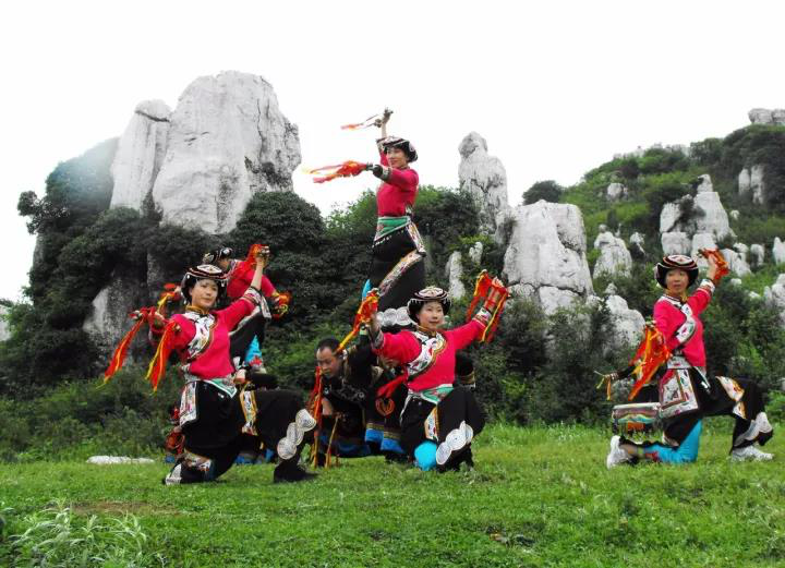 彝族“鈴鐺舞”跟彝族其他舞蹈最為顯著的共同特征是在舞蹈中,靜態(tài)造型多,動(dòng)態(tài)造型少,腳下的動(dòng)作多,手臂造型少,且鋼勁有力。