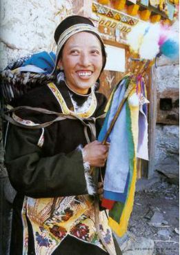 搬家的這天,家里人都要穿上節(jié)日盛裝。一大清早,家庭主婦身著藏裝,手捧象征五谷豐登的“切瑪”,喜氣洋洋去新家;走在主婦身邊的是家庭男主人,他手里提著青稞酒。當然。隨著社會經(jīng)濟的發(fā)展和生活水平的提高,有許多藏族男子在喬遷新居時已經(jīng)是西裝革履;他們手里提的,也許會是啤酒。孩子們最喜歡家里有喜事,最喜歡辦喜事。也最喜歡熱鬧。在這種時候,他們身穿新藏裝,嘴里不停地吃著東西,幫家人提個燒水壺之類的東西。喬遷新居的喜慶充溢在全家人的臉上。