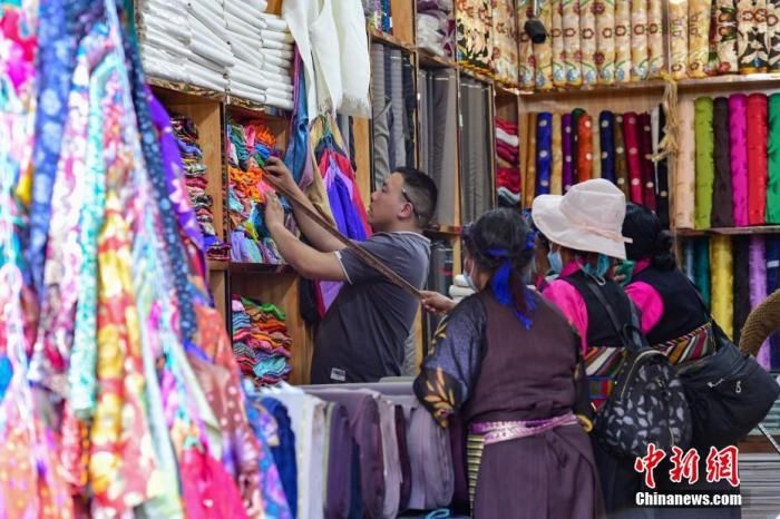 拉薩老城區(qū)的八廓街上,花樣繁多的藏裝店構成一道絢爛民族風。店中選購藏裝的顧客,既有本地人,也不乏口音各異的外地游客。22日下午,在此經營藏裝店10余年的卓瑪迎來“特殊”的客人。