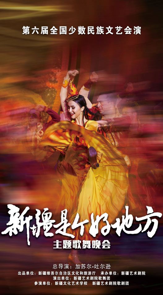 9月11日,由新疆維吾爾自治區(qū)文化和旅游廳策劃指導(dǎo),新疆藝術(shù)劇院統(tǒng)籌打造,新疆藝術(shù)劇院歌舞團(tuán)創(chuàng)作的主題歌舞晚會(huì)《新疆是個(gè)好地方》亮相第六屆全國少數(shù)民族文藝會(huì)演,在央視網(wǎng)和國家民委門戶網(wǎng)站進(jìn)行展播,向全國觀眾講述了多彩的新疆、團(tuán)結(jié)的新疆、大美的新疆。