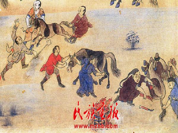放牧遠(yuǎn)行,馬是重要的交通工具;嫁娶新人,要以駿馬為坐騎;宗教神話中,馬是神的代言者;草原盛會(huì),賽馬是必不可少的內(nèi)容;在蒙古族民間傳說和歌謠中,對(duì)馬的贊頌更是比比皆是。馬是蒙古人日常生活最親密的伙伴,蒙古人有特別濃厚的戀馬情結(jié),這就是我們說的“馬文化”現(xiàn)象。蒙古族的馬文化是在長期生產(chǎn)生活中逐漸形成、演化、發(fā)展而來的。曾是軍事、交通運(yùn)輸、農(nóng)業(yè)生產(chǎn)等活動(dòng)的主要?jiǎng)恿Α?/p>