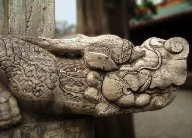 螭首是古代建筑石作制度中的主角之一,有平衡臺基望柱的重力和排水的功能,同時也是建筑上的裝飾構(gòu)件,是標志著封建禮制建筑等級的象征,是實用與裝飾的完美結(jié)合的建筑裝飾小品。節(jié)奏和韻律是中國古建筑的重要特點。