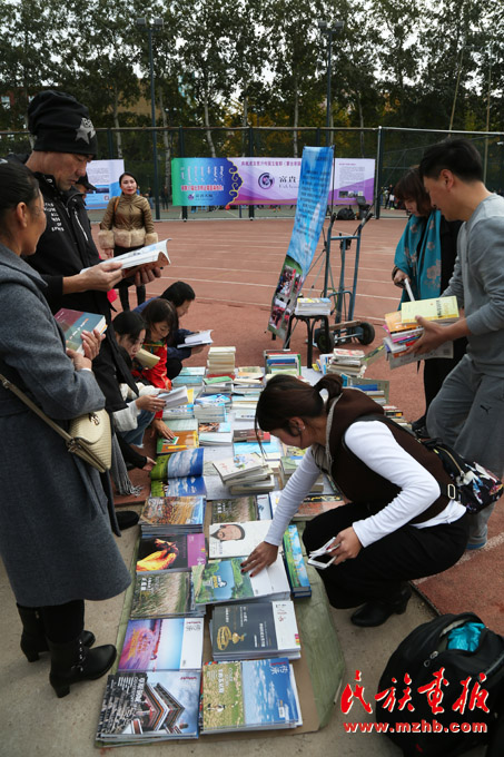公益售書活動(dòng)中,讀者閱覽蒙古文書籍