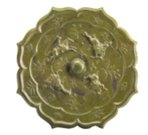 目前我國僅存三面有關(guān)打馬球圖案的銅鏡,一件為故宮博物院的傳世品,另一件收藏于安徽懷寧縣博物館,而以揚(yáng)州出土的這一面銅鏡保存最好,是唐鏡中的珍品。這枚打馬球紋銅鏡收藏于江蘇省揚(yáng)州博物館,直徑18.5厘米、厚1厘米,1965年出土于揚(yáng)州邗江泰安金灣壩工地。鏡為菱花形,圓鈕。鏡背主紋為4名騎士,有的高舉鞠杖,作搶球狀;有的俯身向前,鞠杖向下,作擊球狀;四馬馳騁,四人搶球,氣氛熱烈緊張;人與球之間襯以高山、花卉紋,顯現(xiàn)出在郊外運(yùn)動場比賽的情景,更添一絲活潑的生活氣息。