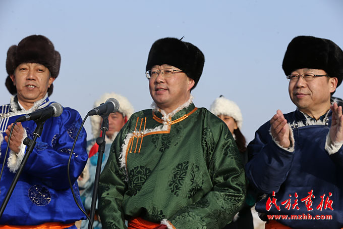 錫林郭勒盟委副書記、行署盟長霍照良(中)宣布那達(dá)慕開幕