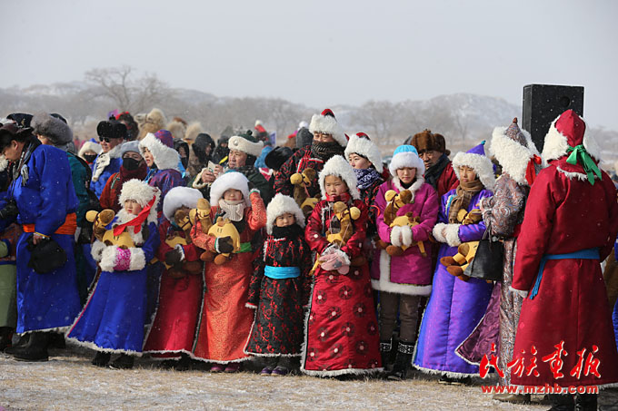 身著傳統(tǒng)察哈爾服飾的兒童們