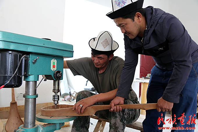 走進新疆克孜勒蘇柯爾克孜自治州阿合奇縣色帕巴依鄉(xiāng)色帕巴依村,一排排房屋整齊有序,沿路花壇里開著叫不上名的花,藍天映照下,顏色格外鮮艷。走進一間普通民居,一個柯爾克孜小伙兒正埋頭打磨著一把木質(zhì)樂器,這正是柯爾克孜族的傳統(tǒng)樂器——庫姆孜。房間里擺著一溜兒木質(zhì)雕刻的半成品。