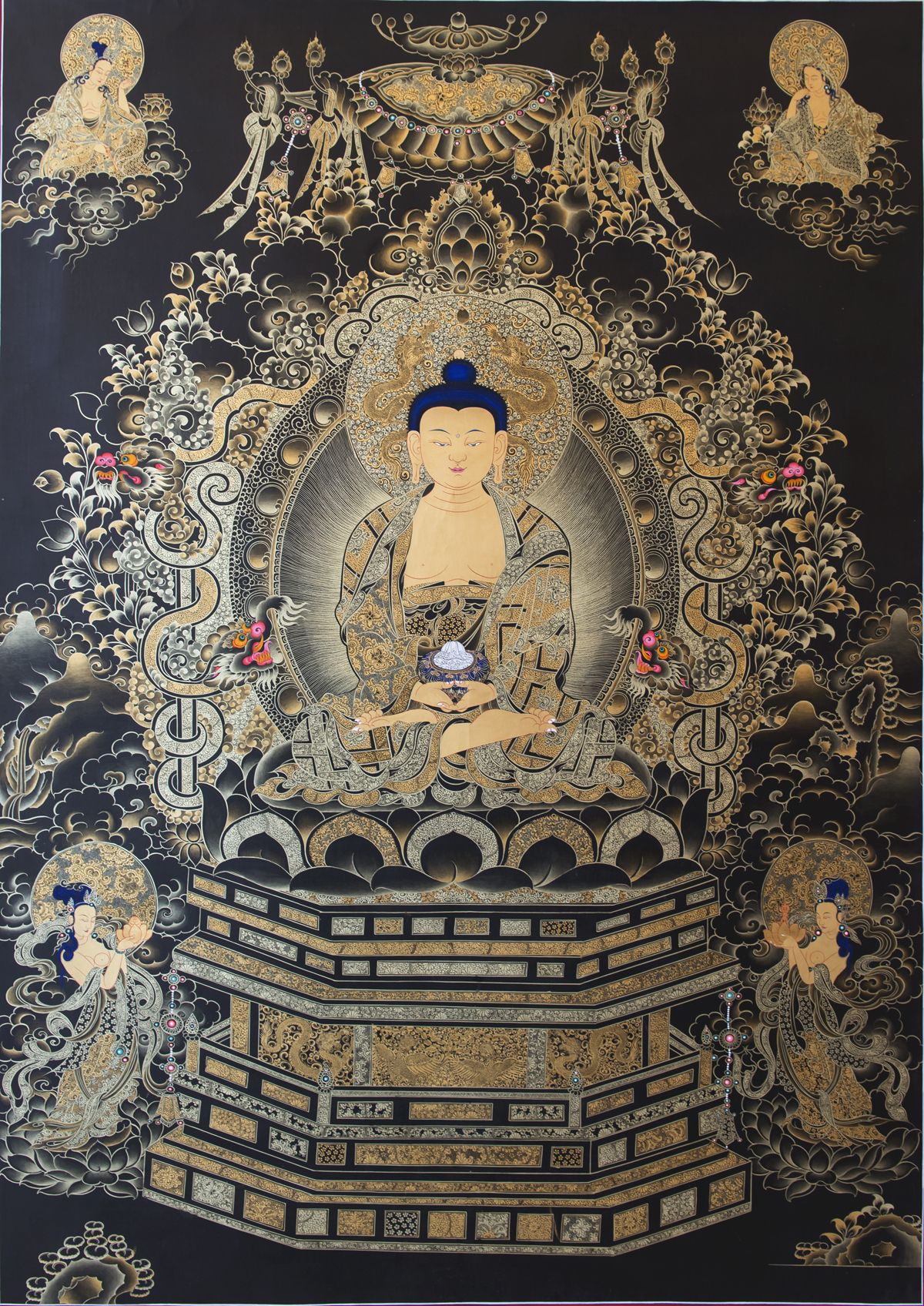 阿彌陀佛(梵語(yǔ)Amitābha),又名無(wú)量佛、無(wú)量光佛、無(wú)量壽佛等。大乘經(jīng)載,阿彌陀佛在過去久遠(yuǎn)劫時(shí)曾立大愿,建立西方凈土,廣度無(wú)邊眾生,成就無(wú)量莊嚴(yán)功德,為大乘佛教所廣為崇敬和弘揚(yáng)。大乘佛經(jīng)主要如《無(wú)量壽經(jīng)》、《阿彌陀經(jīng)》、《觀無(wú)量壽佛經(jīng)》,對(duì)阿彌陀佛及其西方極樂世界均有詳述。大乘佛教流傳之地,如中國(guó)、日本等大乘教區(qū),阿彌陀佛信仰也尤為繁盛和重要。而漢傳佛教的凈土宗,則完全以往生阿彌陀佛的西方凈土作為專修的法門。