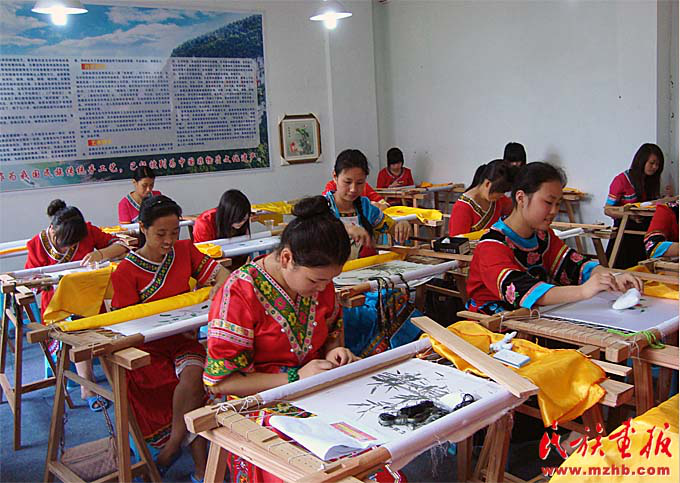 2015年,李紹玉榮獲年度“全國(guó)優(yōu)秀農(nóng)民工”。2016年,李紹玉成為重慶非物質(zhì)文化遺產(chǎn)——彭水苗繡的代表性傳承人。從一個(gè)打工女,到回家鄉(xiāng)帶動(dòng)村民致富,再到成為全國(guó)人大代表,她說(shuō)自己深感榮幸和責(zé)任重大?!翱偫韴?bào)告里專門提到‘加強(qiáng)文物保護(hù)利用和文化遺產(chǎn)保護(hù)傳承’,我自己的成長(zhǎng),就得益于此。苗繡是苗族人民古老而美麗的技藝,我們有責(zé)任把它世代傳承下去。我們也要在苗族文化與手工藝術(shù)品融合上下功夫,使傳統(tǒng)工藝與市場(chǎng)結(jié)合、傳統(tǒng)元素與現(xiàn)代時(shí)尚相結(jié)合?!?/p>