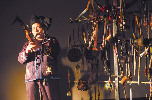 佤族人聚居在云南省西盟佤族自治縣,他們世代敬山敬樹。9月11日,4名佤族農(nóng)民從西盟縣司崗里村來到北京,在著名的798藝術區(qū)尤倫斯當代藝術中心唱起了“古歌”,用自制的樂器和原始的舞步,演繹著他們自己的生活、勞作和儀式。