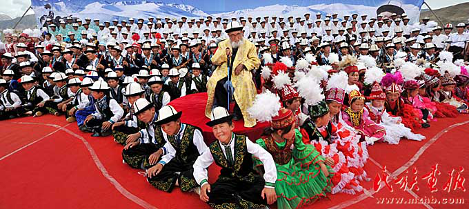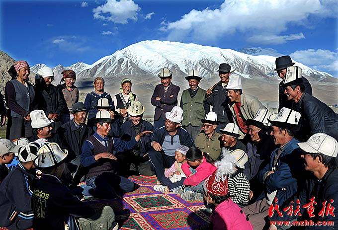 在慕士塔格峰下傳唱《瑪納斯》的柯?tīng)柨俗稳耍s提克爾 ·尼加提 攝影)