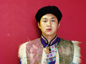 在民族文化宮的展覽中,有一幅大照片——一位老釋比,手拿羊皮鼓,頭戴猴皮帽,表情莊嚴(yán)、凝重。那正是釋比傳人朱金龍。朱金龍這次也來到了北京,把他祖祖輩輩傳下來的釋比文化展現(xiàn)給北京的觀眾。