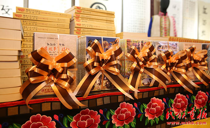 展出的大型彝族文化工程“十個一百”系列叢書《中華彝學文庫》