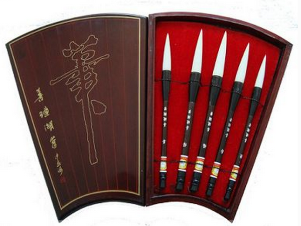 湖筆的第三個(gè)特點(diǎn)是品種多。目前以用途可分書(shū)寫(xiě)繪畫(huà)、工業(yè)、特用三大類(lèi)用筆;以性能分有軟、硬、兼三類(lèi)。這三類(lèi)所用的筆料就有十多種獸毛及其它禽羽等為原料,像硬毫中的黃鼠狼(鼬尾)、石獾、馬尾、豬鬃、山兔以富強(qiáng)性,落墨勁有力流利見(jiàn)長(zhǎng),軟毫的羊毫長(zhǎng)而穎銳,運(yùn)軟圓渾圓含墨飽滿(mǎn),枯潤(rùn)適用得當(dāng)則墨色筆意變化無(wú)窮。兼毫則剛?cè)嵯酀?jì)宜書(shū)宜畫(huà)。如似大小長(zhǎng)短粗細(xì)來(lái)分那就有數(shù)百種之多,這和中國(guó)許多毛筆產(chǎn)地品種都類(lèi)似的。