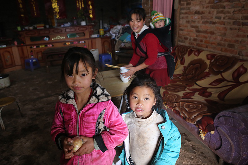 美芬的媽媽是個(gè)非常聰慧能干、愛(ài)說(shuō)愛(ài)笑愛(ài)打鬧的人,喜歡開(kāi)玩笑,也能看出很隱忍。在美芬媽媽的鼓動(dòng)下,我和她在花山場(chǎng)玩起了打木秋。木秋比我小時(shí)候玩過(guò)的蹺蹺板大了好幾倍,最高處離地估計(jì)有五六米,每次對(duì)方雙腳蹬地彈起時(shí),我這邊就會(huì)以失重的感覺(jué)落地。那種在風(fēng)中快速下降的緊張刺激只有通過(guò)尖叫才能釋放,而每次我失控大叫的時(shí)候,底下村民都會(huì)一片哄笑。下了木秋,感覺(jué)還在騰云駕霧。美芬的媽媽過(guò)來(lái)架著我的胳膊哈哈大笑,像個(gè)小姑娘。她40歲不到,但常年勞累以及沒(méi)有好好保養(yǎng),看上去比實(shí)際年齡大了不少。聊起女兒的未來(lái),她呵呵一樂(lè)說(shuō):“我不擔(dān)心她嫁不出去,讀好書再說(shuō)。我當(dāng)年是沒(méi)有其他機(jī)會(huì),所以早早結(jié)婚了,她現(xiàn)在有條件了,那么著急做什么!”