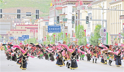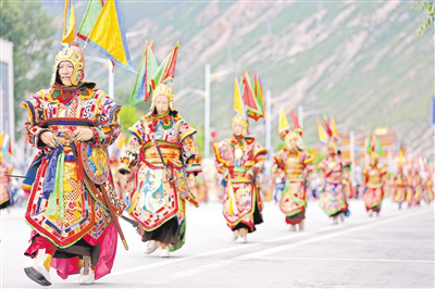 2017年7月24日下午,一場名為“瀟灑的康巴人”玉樹風(fēng)情巡游在玉樹藏族自治州州府玉樹市街頭上演。來自玉樹州一市五縣的康巴藏族兒女或馭駿馬、或盛裝、或歌舞,以行走巡游的方式展示當(dāng)?shù)鬲毦咛厣拿褡迕袼孜幕8骺h巡游隊伍從感恩廣場出發(fā),途徑結(jié)古大道、民主路,最終到達(dá)玉樹軍分區(qū),沿途圍滿了觀看的群眾和游客,據(jù)悉,此次巡演在玉樹州尚屬首次。