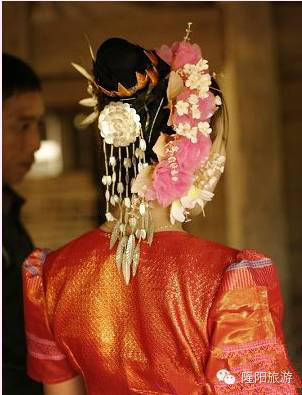 男方家也得請客。新郎啟程去接新娘子,家里馬上就殺雞做飯,新郎新娘回來后要吃染成黃色的糯米飯和雞肉,表示往后生活美滿幸福,像糯米飯一樣結成團永不分開。晌午時分,是新郎家待客最熱鬧的時候,幫廚的人擺上各種酒菜,親朋寨鄰老老少少全坐到天井里,歡歡鬧鬧地吃飯。最后,客人們有的陸續(xù)走了,愿留下的湊攏幾桌,邊喝酒邊暢談,一直要吃到第二日還不歇。