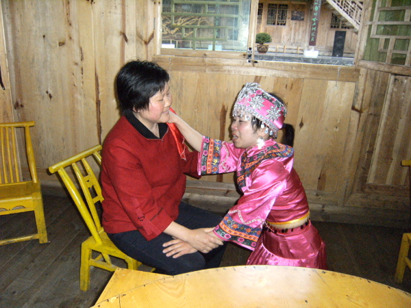 哭嫁歌內(nèi)容有“母女對(duì)哭”“嫂妹對(duì)哭”“姐妹對(duì)哭”“哭離娘席”“哭別祖宗”“哭兄弟”“哭梳頭”“罵媒人”“哭上轎”等,甚至還有同村同齡未婚姑娘的群哭——“哭十姊妹”??藜薷柙从谕良易骞媚锍黾耷暗目藜拗?,越是臨近婚期,哭聲越悲,甚至通宵達(dá)旦。2010年,“土家族哭嫁歌”已被列入第三批國(guó)家級(jí)非物質(zhì)文化遺產(chǎn)名錄。