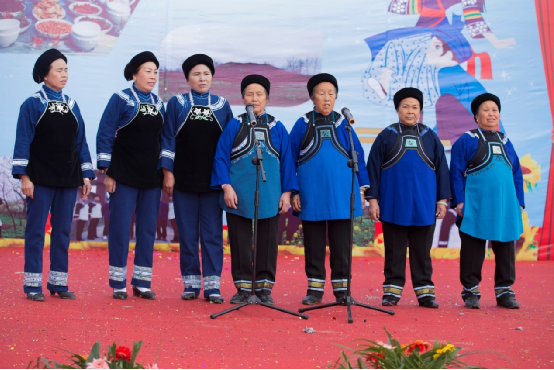 扁坡村“三月三”隨著社會(huì)的進(jìn)步,活動(dòng)的重心逐漸向民族文化等歌舞表演形式轉(zhuǎn)移,但布依族從古至今都是一個(gè)注重農(nóng)耕文明的民族,他們對(duì)于大地的熱愛,無以言表卻在歌舞中流露著民族的敬仰之情。阿婆們穿著質(zhì)樸的民族服飾,深藍(lán)的衣裙襯得她們莊重又從容,唱著那布依老歌,仿佛家中的老奶奶坐在長(zhǎng)椅上溫柔地向孩子們?cè)V說過去的種種。