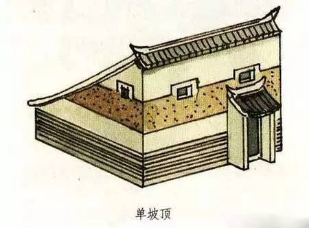 單坡頂就是只有一面坡的屋頂。它與我們常見的兩面坡屋頂有較大的不同,但從一面來看又有極大的相似性。我們甚至可以說,單坡屋頂就像是兩面坡屋頂被從中間一切兩半了。單片屋頂一般都用在不太重要的建筑或是附屬性的建筑上。在已發(fā)掘的商代宮殿遺址中,可以看到在商代即有單坡頂?shù)睦茸恿恕6F(xiàn)在的陜西、陜西等地的農村,許多民居仍然使用單坡式的屋頂,成為現(xiàn)今較富有特色的一種民居形式。