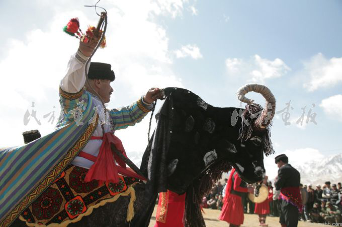 塔吉克族另一種獨(dú)具特色的舞蹈木偶舞,俗稱“乖孩子”。 塔吉克族人口少,喜愛(ài)孩子,所以木偶的形象多為小孩。舞者左手持小木棍,并把它裝縶成懷抱著的小男孩,右手撫摸哄逗,載 歌載舞,非常有趣。木偶舞的傳統(tǒng)劇目有《商人與馬》、《心愛(ài)的寶寶》、《叨羊》等,劇中還會(huì)使用到木馬、耗牛、羊等造型 的道具,表演形式近似漢人的“跑旱船”和“跑驢”。演員的下半身是布簾扎成的馬、牛身體,前有馬牛首后有尾,以夸張模樣的木偶來(lái)邊喝邊舞,表現(xiàn)形式活潑幽默,深受人民喜愛(ài),是塔吉克族民間傳統(tǒng)娛樂(lè)的方式。