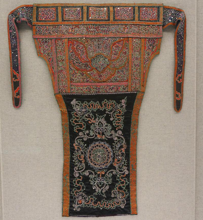 水族服飾的特點(diǎn)是“短衣長(zhǎng)裙”,且完全用火麻土布作面料,民國(guó)以后逐漸易裙為褲。水族服飾中最有代表性的是女性的服飾。水族女服多以水家布縫制,一般不繡花邊。而節(jié)日和婚嫁盛裝與平時(shí)穿戴截然不同。婦女刺繡的背帶更有藝術(shù)性。