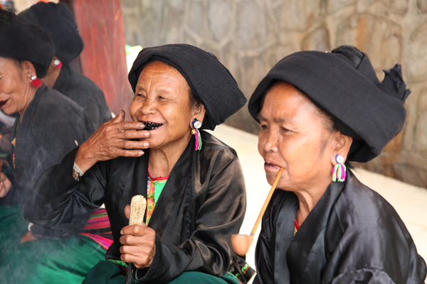 男子一般穿黑色或青色寬大長褲和對襟無領(lǐng)上衣纏頭巾。成年男子喜愛文身。無論男女都喜歡飲酒、染齒、吸煙。布朗族有一獨特的風(fēng)俗“染齒”。他們認(rèn)為只有染黑的牙齒才最堅固、最美觀。經(jīng)過染齒的男女青年才有權(quán)談戀愛。布朗族男子有文身的習(xí)俗,四肢、胸部、腹部皆刺以各種幾何圖形和飛禽走獸,然后涂上碳灰和蛇膽汁,使其不消失。