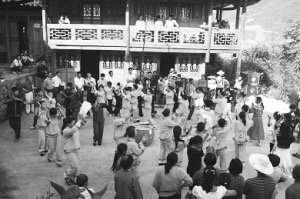 從古至今,每年的正月初九“舍巴節(jié)”(舍巴:土家語擺手舞的意思)、三月三“祭祖節(jié)”、“冬至?xí)?,土家人都要在擺手堂舉行盛大的祭祀活動。農(nóng)閑時(shí)的夜晚,在農(nóng)家院壩,點(diǎn)燃熊熊篝火,男女老少在有奏的鑼鼓聲中歡快地舞蹈,盡情地歌唱。清代文人彭施鐸在《竹枝詞》中載:“福石城中錦作窩,土王宮前水生波,紅燈萬盞人千疊,一片纏綿擺手歌。”寥寥數(shù)語把土家人跳擺手舞的盛況真實(shí)地展現(xiàn)出來。