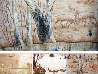 樺樹皮畫是樺樹皮工藝品中重要一種,它從簡單適用的生活必需品中脫穎而出,成為滿族鄂倫春、鄂溫克、達斡爾、赫哲等北方狩獵民族精神文化特殊需求的用品。樺樹皮畫是用樺樹皮為繪畫材料,運用樺樹皮天然形成的紋理、樹節(jié)為繪畫元素,利用獨特的繪畫工藝和技術繪制的以反映游獵民族社會生活為內容,體現(xiàn)游獵民族思鄉(xiāng)情懷的工藝美術品。樺樹皮畫主要使用揭皮手法和碳化工藝來進行創(chuàng)作,崇尚自然和環(huán)保理念。自然古樸、不可復制、裝飾性強和游獵民族的民族特性,是樺樹皮畫的幾個突出特點。