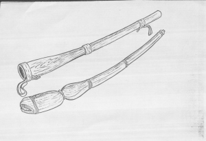10月,我們坐火車,經(jīng)齊齊哈爾、牙克石,來(lái)到呼倫貝爾的鄂倫春自治旗阿里河鎮(zhèn),參加了旗里舉辦的慶祝國(guó)慶12周年和建旗10周年的慶典活動(dòng)。慶典上有一個(gè)鄂倫春文化展,展出了鄂倫春人的生產(chǎn)生活用具、手工藝品等。展覽結(jié)束后,旗政府就將展品全部交給我們,贈(zèng)送給中國(guó)歷史博物館。剛一出馬就收獲了這么多文物,這讓我非常興奮。