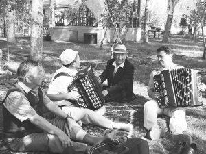 海扎托拉(右一)和朋友們一起拉手風琴