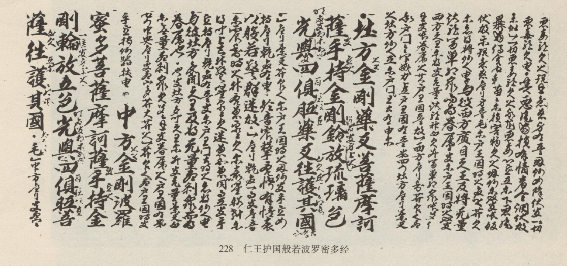 白文注寫本佛經。正文漢字,以白文作旁注并有大段白文疏記。全卷計漢字1800余字,白文注約1700字,疏4300字。據考書于南詔末年。1956年在云南省大理市鳳儀縣北湯天村董氏宗祠法藏寺中發(fā)現?,F存云南省圖書館。