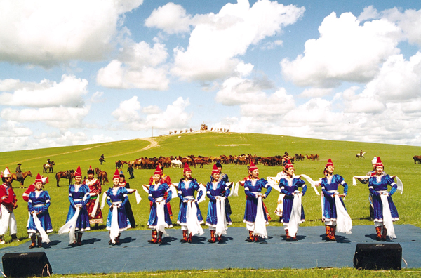 內(nèi)蒙古烏蘭牧騎的演員,吹拉彈唱跳,幾乎個(gè)個(gè)是多面手。從以前騎馬下鄉(xiāng)到現(xiàn)在坐車(chē)下鄉(xiāng),方式雖然有變,但為農(nóng)牧民演出的熱情沒(méi)有變。鄂溫克自治旗烏蘭牧騎在當(dāng)?shù)貫檗r(nóng)牧民演出都是公益性的,一年最少也有100多場(chǎng)。但自然地,由上級(jí)指派、旅游接待、大型晚會(huì)、出訪演出,則收一些相應(yīng)費(fèi)用。全年下來(lái)300多場(chǎng)。他們的演出節(jié)目,一般都有舞蹈、獨(dú)唱、重唱、馬頭琴合奏、民歌聯(lián)唱等,包括《敖包相會(huì)》、《萬(wàn)馬奔騰》等馬頭琴名曲,也有他們自己創(chuàng)作的《山林回想》、《鄂溫克大地》等獲獎(jiǎng)歌舞劇目。