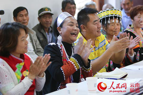 “邊疆人民感黨恩,聽黨話,跟黨走,建設新時代的新農村,啰西貢 !哎!啰西貢!哎 !江三木啰……”11月2日,云南省普洱市寧洱縣同心鎮(zhèn)的那柯里村委會會議室歌聲四起、掌聲不斷。來村委會辦事的群眾以為是舉辦文藝活動,都湊來觀看,不一會兒,會議室甚至門口都擠滿了人。