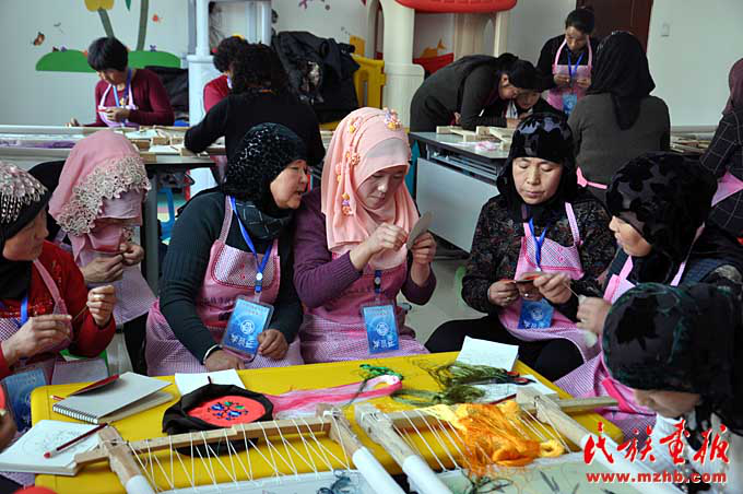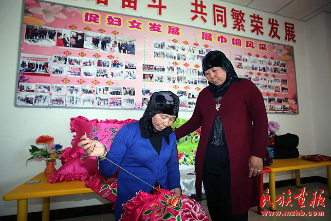 東鄉(xiāng)縣婦聯(lián)開展的手工編織技能培訓(xùn)使更多東鄉(xiāng)族婦女利用刺繡等一技之長增加了家庭收入(胡發(fā)偉 攝影)