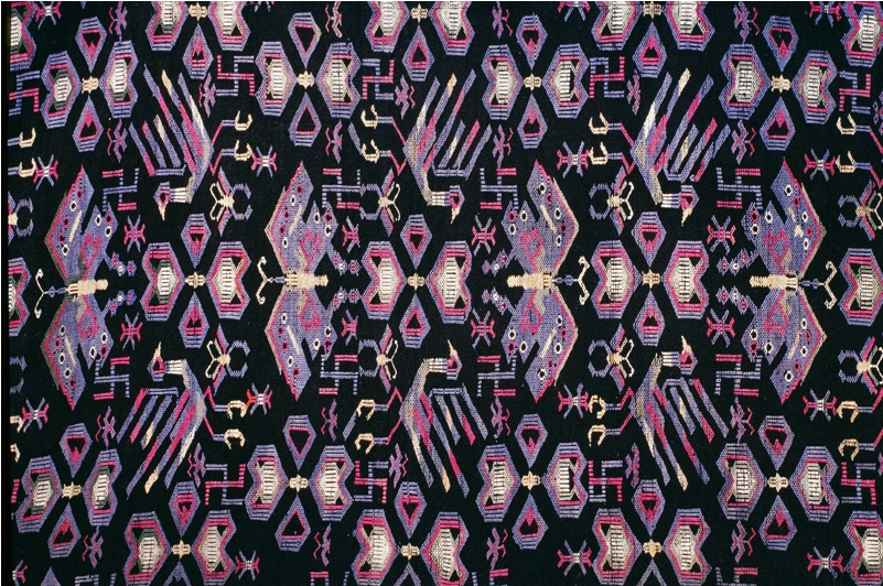 亳無(wú)疑問(wèn),蝴蝶圖騰即是對(duì)蠶的崇拜,蠶文化原初的核心便是人歸途的儀式,人要在這種和蠶一祥的儀式中得到再生。今天的苗族,仍然保持著以絲綢裹身而葬的喪葬習(xí)俗。我祖母養(yǎng)蠶織就的絲織品,我們習(xí)慣稱作蠶絲床單,絕大部分是備著喪葬所用。凡有人去世,主客必送一床蠶絲單,沒有是不行的,被視為不懂禮節(jié),而死者獲得蠶絲單越多越好。有的人家收到的蠶絲單過(guò)多,就會(huì)保存一部分,留著將來(lái)的喪事送禮。苗族每個(gè)人都必備一件絲質(zhì)壽衣。并且,在許多重大的儀式活動(dòng)中必須要著絲綢服裝。比如在苗族重大的鼓藏節(jié)期間,鼓社頭必須穿絲織鼓社服;大祭典活動(dòng)時(shí),祭師也必須穿絲質(zhì)服裝等等。