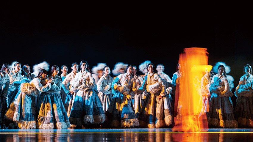 為何我們會(huì)記住倉(cāng)央嘉措?無(wú)論你是否到過(guò)西藏,你看了這部舞劇后最終都會(huì)明白,因?yàn)樗且晃粍?dòng)人心魄的情僧。他的情詩(shī),亦是情花,遍灑在這片土地上,令繁花盛開(kāi),情緣流長(zhǎng)。我們難以忘懷的不是這位達(dá)賴(lài)?yán)飩髌娴纳矸?,而是他?duì)家鄉(xiāng)深深的眷念,對(duì)情愛(ài)的難以割舍。歲月無(wú)情亦有情,它做了時(shí)間的信差,傳遞了300年前的故事。面對(duì)情感,無(wú)論多么堅(jiān)強(qiáng)的心都會(huì)變得柔軟。所以每一個(gè)讀過(guò)倉(cāng)央嘉措詩(shī)歌的人,都會(huì)陷入那濤濤的情海里難以自拔。