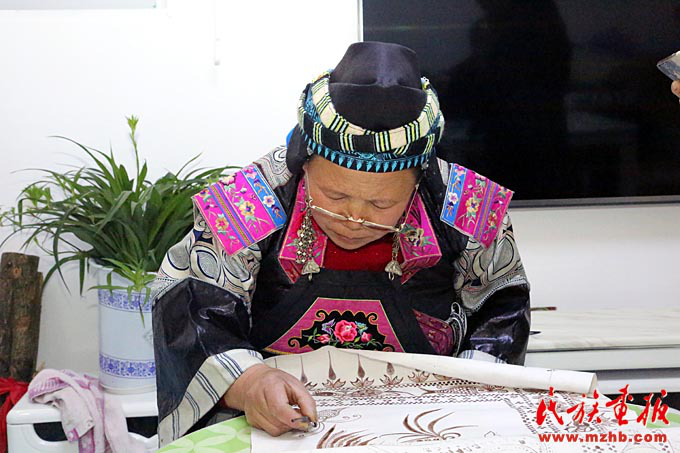 寧曼麗是安徽人,2008年她經(jīng)營的紡織外貿(mào)生意遭到挫折,她到凱里意外發(fā)現(xiàn)了蠟染,她深深地被這種原生態(tài)的、充滿魅力的蠟染工藝吸引。三個月后就在丹寨開了公司。如今寧曼麗采取“公司+基地+農(nóng)戶”的模式發(fā)展生產(chǎn),每年都有來自世界各地的訂單。寧曼麗和她的寧航蠟染有限公司一方面保護(hù)了傳統(tǒng)、傳承了技藝,另一方面又解決了就業(yè)、提高了農(nóng)民收入。