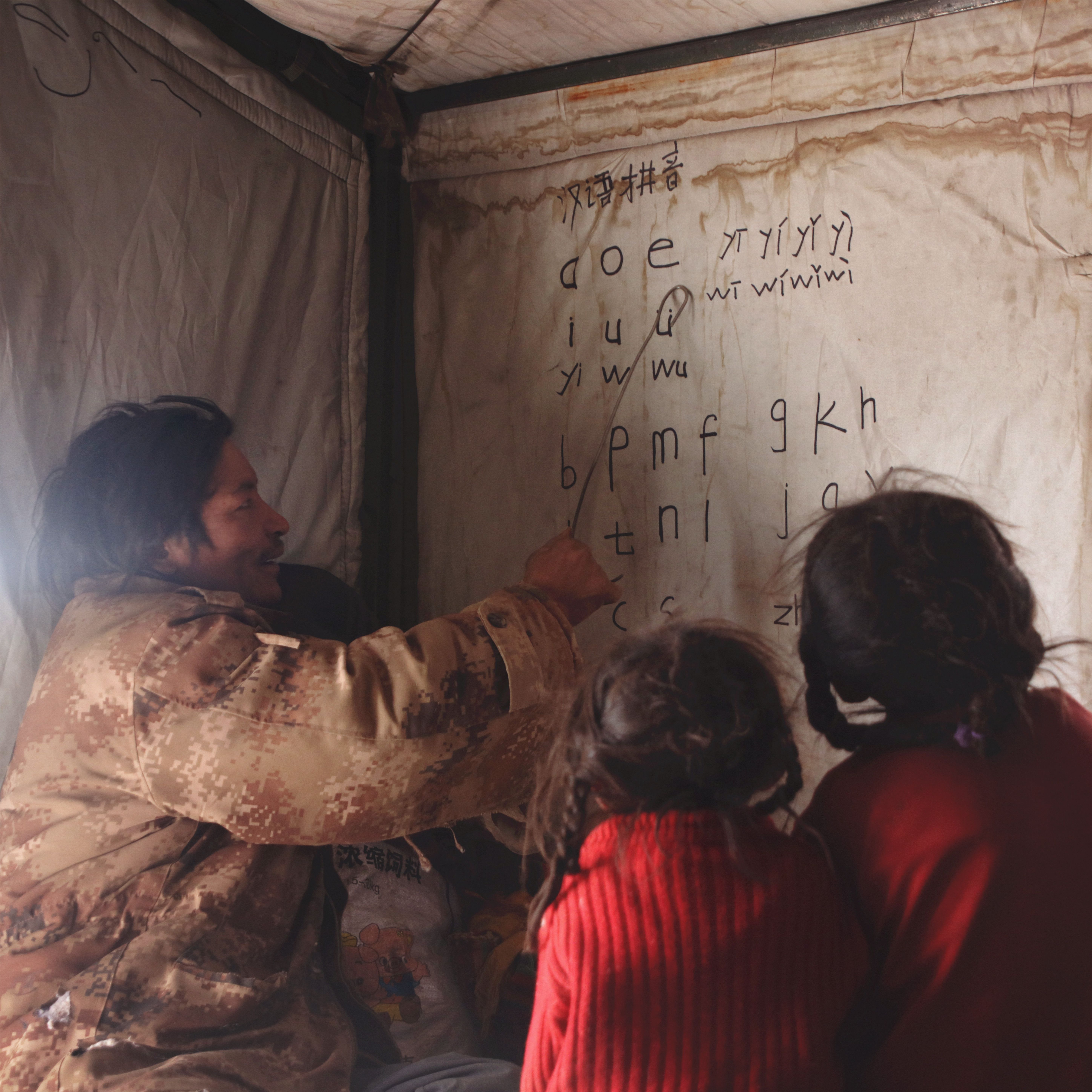 圖片說明:野保員在家教女兒漢語拼音
