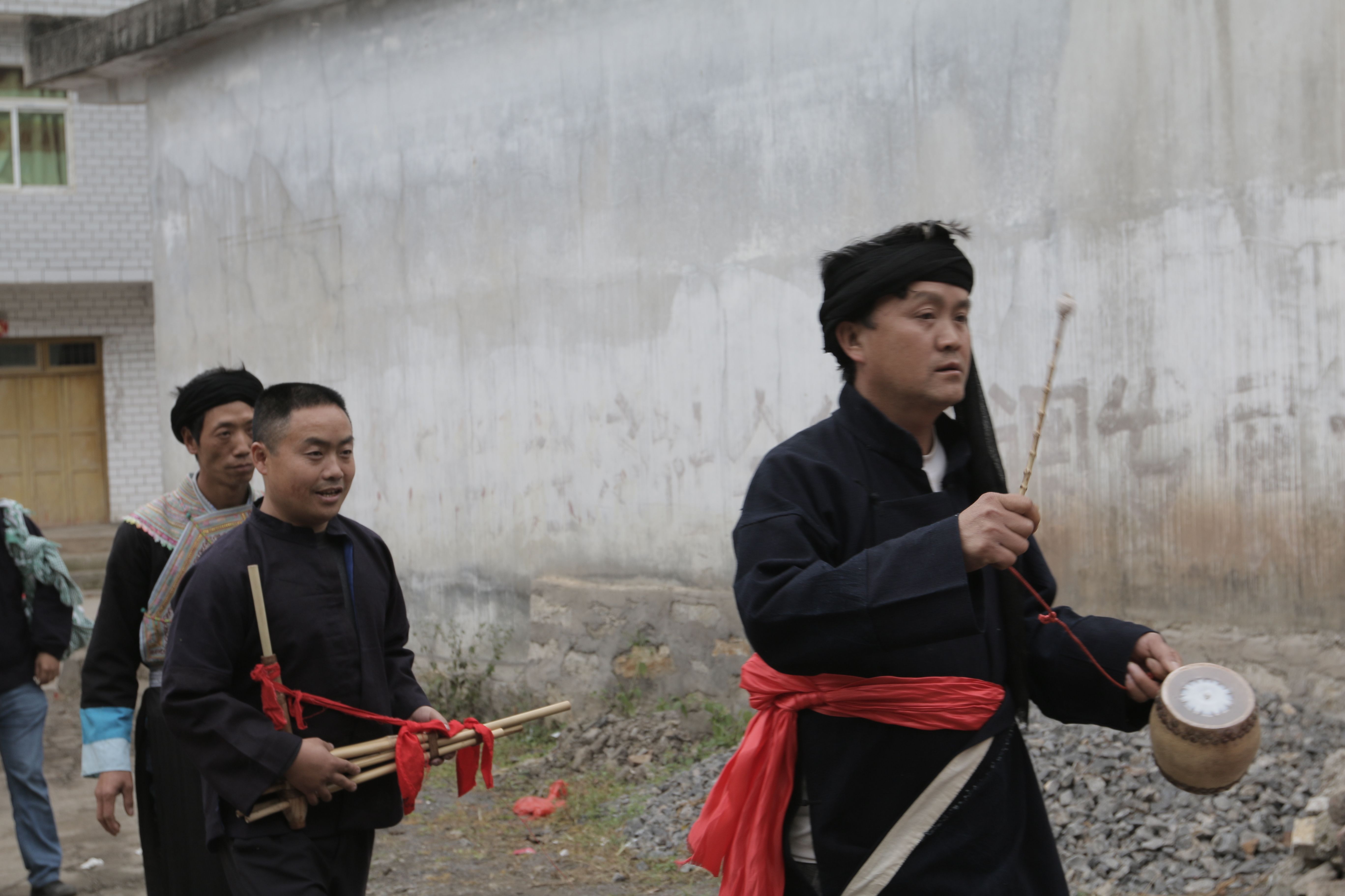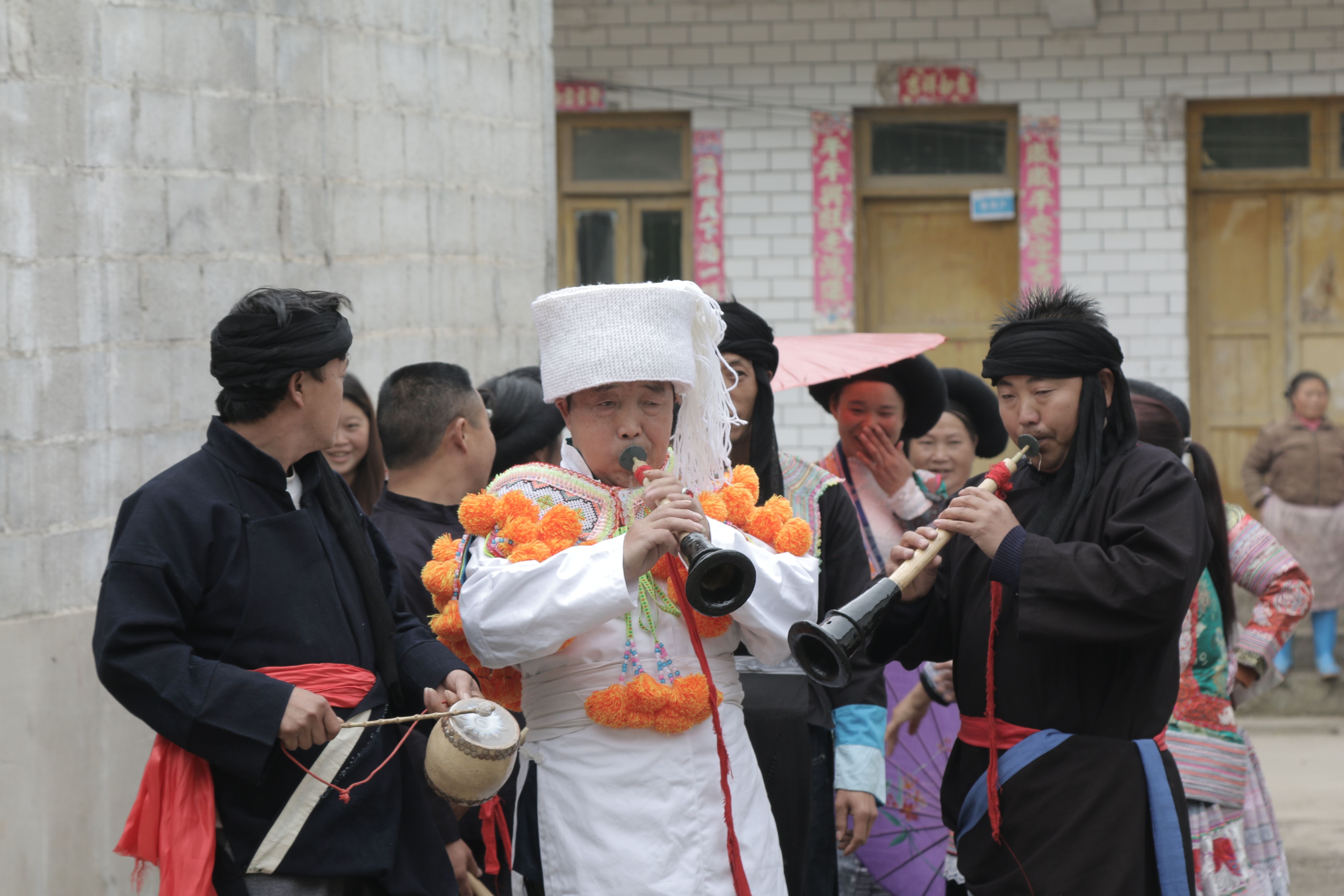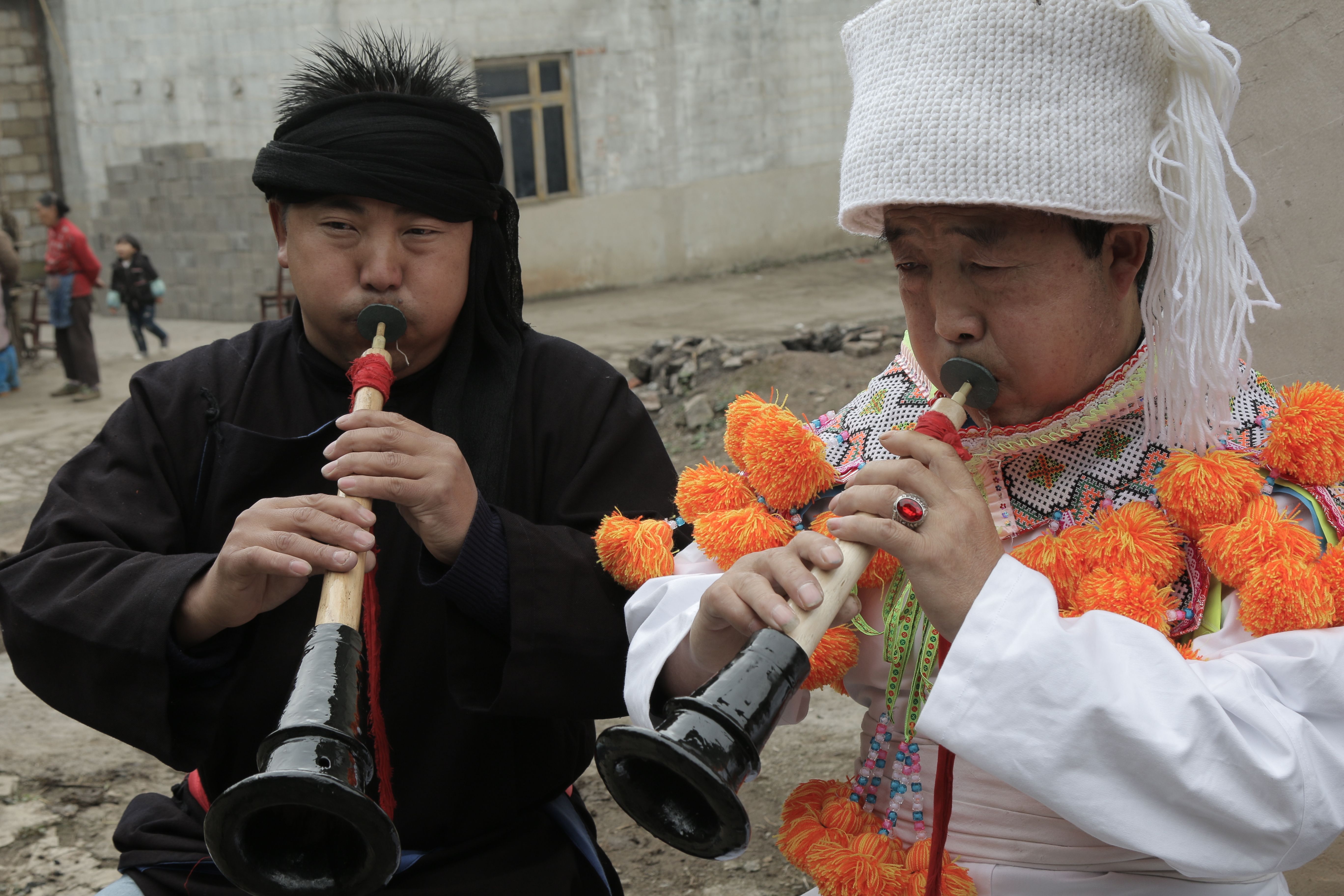 圖片說明:貴州貴陽苗族婚禮上的奏樂