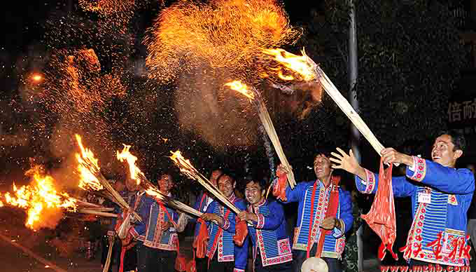 火把節(jié)是彝族傳統(tǒng)節(jié)日中最普遍、最隆重、最富有民族特色的節(jié)日,一般在農(nóng)歷六月二十四至二十六舉行,楚雄彝族火把節(jié)于2006年5月經(jīng)國(guó)務(wù)院批準(zhǔn)為第一批國(guó)家級(jí)非物質(zhì)文化遺產(chǎn)保護(hù)項(xiàng)目。節(jié)日內(nèi)容集民俗活動(dòng)、經(jīng)貿(mào)活動(dòng)、文體活動(dòng)和社交活動(dòng)于一體,像磁石一樣吸引著各族群眾,許多人就是通過參加火把節(jié)認(rèn)識(shí)了彝族,知道了楚雄彝族自治州的。節(jié)日期間,各族人民載歌載舞,?;鸢选⒎叛婊?,火把節(jié)成了弘揚(yáng)彝族文化、促進(jìn)對(duì)外交流、開展經(jīng)貿(mào)活動(dòng)和各族人民大團(tuán)結(jié)的盛會(huì)。