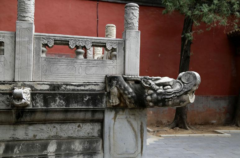 螭首是古代建筑石作制度中的主角之一,有平衡臺基望柱的重力和排水的功能,同時也是建筑上的裝飾構(gòu)件,是標志著封建禮制建筑等級的象征,是實用與裝飾的完美結(jié)合的建筑裝飾小品。節(jié)奏和韻律是中國古建筑的重要特點。