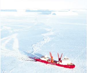 “雪龍”號(hào)是中國(guó)最大的極地考察船,也是中國(guó)唯一能在極地破冰前行的船只?!把垺贝秃?,能以1.5節(jié)航速連續(xù)沖破1.2米厚的冰層(含0.2米雪)。簡(jiǎn)單來(lái)說(shuō),“雪龍”號(hào)船底有許多密封艙,破冰時(shí)先把后部的密封艙用幾千噸的海水灌滿(mǎn);這樣船頭自然翹起,壓騎至冰面之上;然后再把前部的密封艙灌滿(mǎn)海水,后部的海水排出,利用船體前部的巨大壓強(qiáng),把堅(jiān)冰壓裂破開(kāi)。