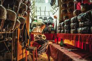 阿布都瓦克·吐爾洪老人,今年63歲,他是阿熱亞路帽子巴扎的手工藝人,店里出售的羊羔皮帽都是他親手制作的。1998年見到他的時候,他的鋪?zhàn)臃浅:喡?,街巷四周塵土飛揚(yáng)。在巴扎工作近30年,老人見證了喀什古城的發(fā)展變遷。