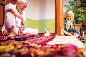 20多年前的喀什古城,老舊巷道縱橫交織,衛(wèi)生狀況較差,一些大膽的老鼠不論白天黑夜在巷道里亂竄,很多人家養(yǎng)貓是為了對付老鼠。如今走在改建后的古城里,所到之處窗明幾凈,而這里的貓從捕鼠者變?yōu)榧彝櫸?。貓已適應(yīng)角色轉(zhuǎn)變,愜意地享受著暖暖的羊毛毯。老兩口對寵物貓像對自家的孩子一樣呵護(hù)備至。