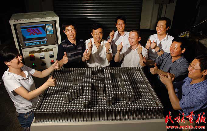 北京“鳥巢”,李明哲科研團(tuán)隊(duì)研發(fā)的“板材無模多點(diǎn)成形裝置”成功破解了“鳥巢”施工過程中遇到的難題