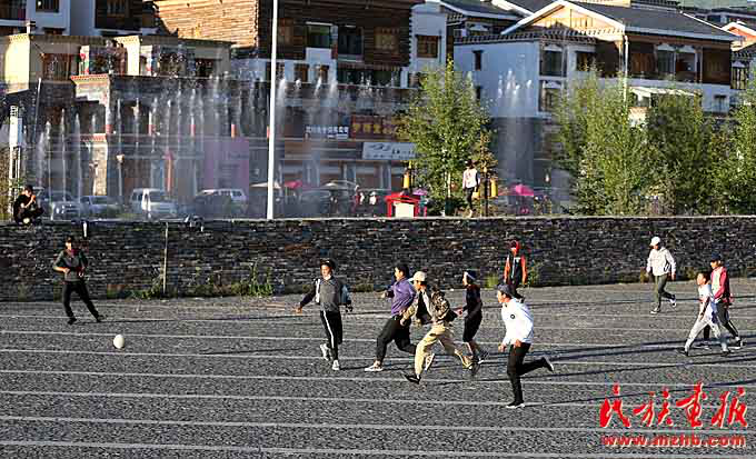 漫步在結(jié)古街頭,看到的是行走在寬闊馬路上幸福祥和的人們;在綠樹掩映的康巴藝術(shù)中心、格薩爾廣場(chǎng),看到的是跳著鍋莊或慢跑的人們享受著城市發(fā)展帶來的愜意;在街道社區(qū),看到的是尊老愛幼、其樂融融的風(fēng)尚。