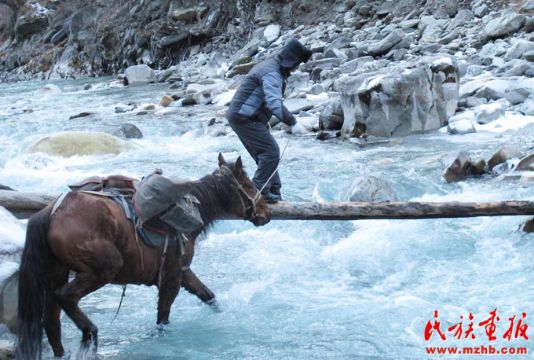 據(jù)了解,之前包扎墩牧區(qū)山溝中的大多數(shù)道路是由牧民們鑿出來的,僅能容下一匹馬或兩只羊通過。在這里居住的牧民十分分散,去一戶牧民家要翻山才能到達,最遠的得騎兩天馬。居馬泰每巡診一次,至少需要20多天,長的線路甚至需要一個多月。包扎墩牧區(qū)沒有通信信號,居馬泰與病人無法及時聯(lián)系,只有騎馬巡診。他每年有超過300天騎馬行走在牧區(qū)里。因為路險,常常會遇到馬失前蹄而險墜山崖的事。