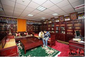 果洛古籍保護(hù)中心的研究人員閱讀《格薩爾》相關(guān)資料